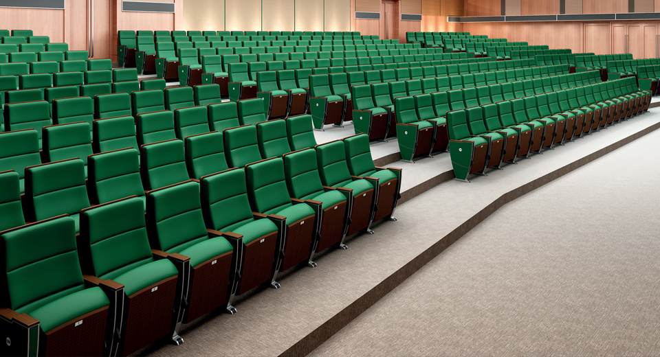 • 適用在禮堂、影劇院、會堂、報告廳等場所,在開會和看演出時應有良好的視線,應便于維修和清掃,使用時應舒適,使人不易疲勞。根據使用和現場的設計需要,會堂的座椅需要放置文件和供記錄用的書寫板,特殊的會堂還要求考慮與同聲翻譯設備和表決、發言設備相結合。查看產品